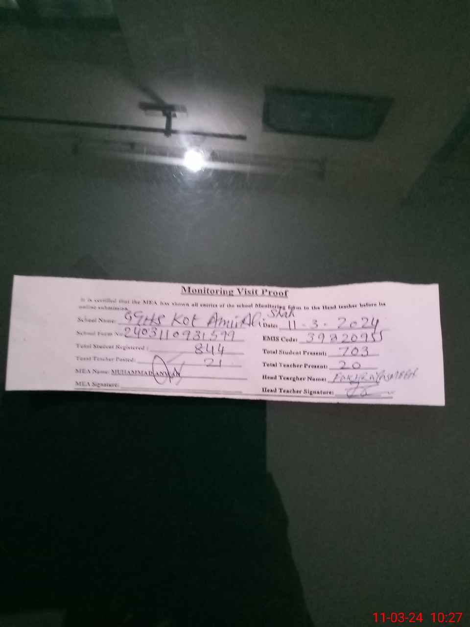 | EMIS Code: 39320955 | Name of School: GGHS MC JUNIOR MODEL KOT AMIR ALI SHAH OKARA | |||