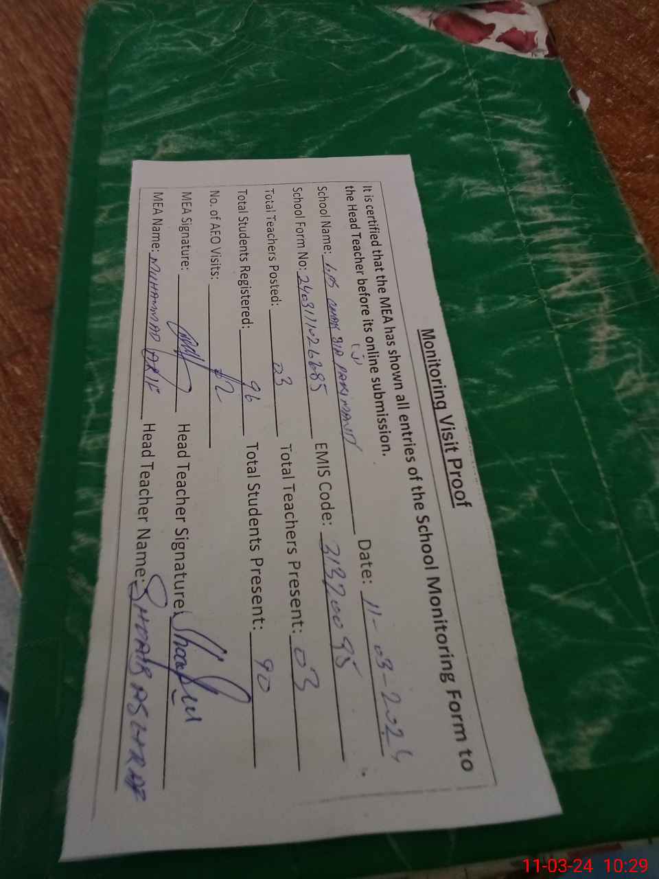 | Certified that this School was Inspected by the Undersigned MEA/DMO Today and the Information Stated Above is as Per Record. | |||||