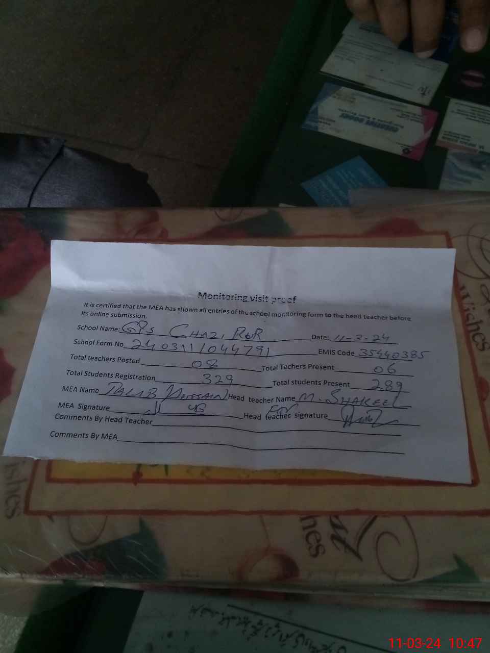 | EMIS Code: 35440385 | Name of School: GES GHAZI PUR | |||