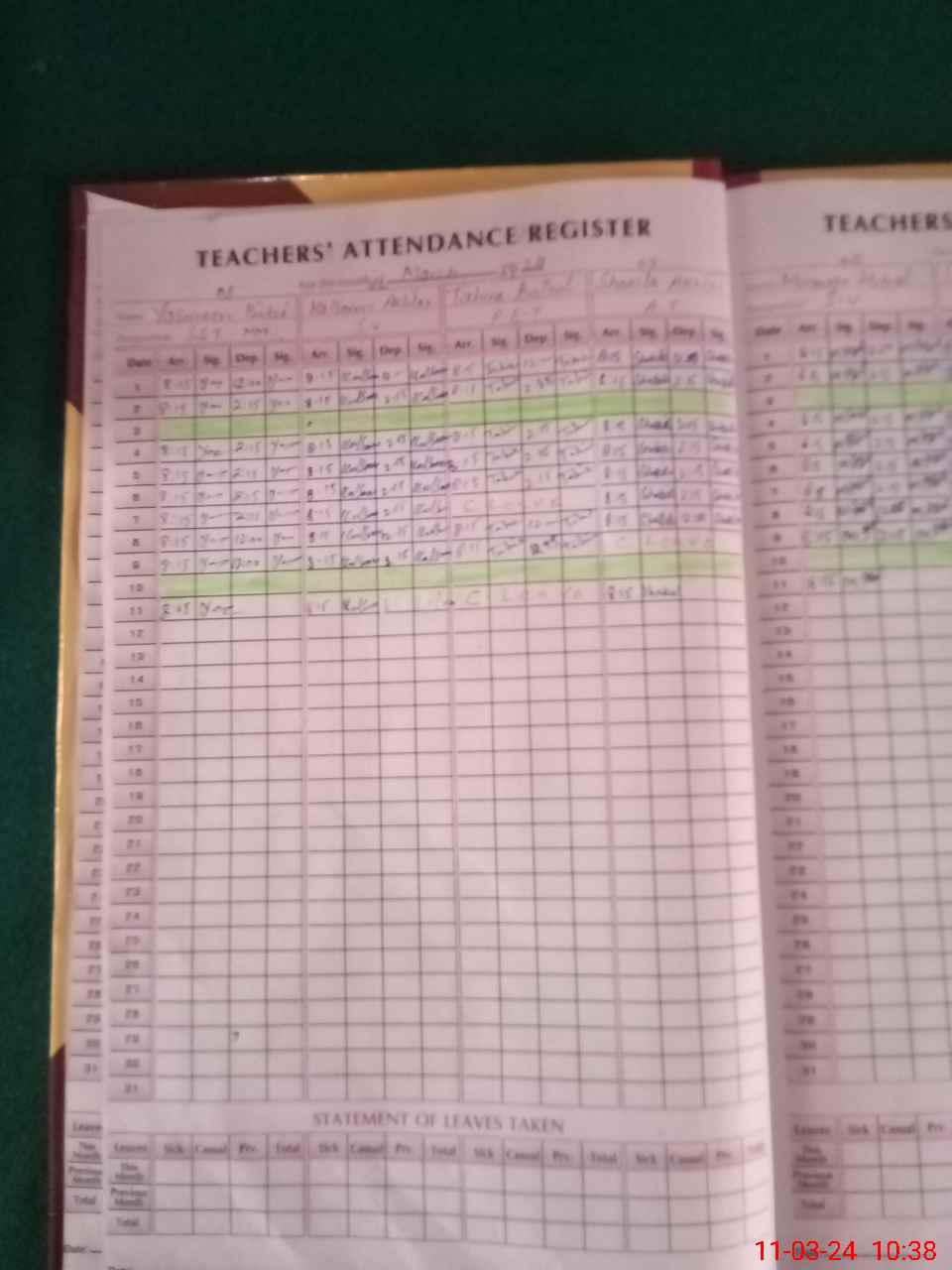 | 33**** | Sh**** Ra**** | 3 | 1 | 0 | 0 | 0 | 0 | 0 | 0 | 0 | 0 | 0 | Exam Duty |