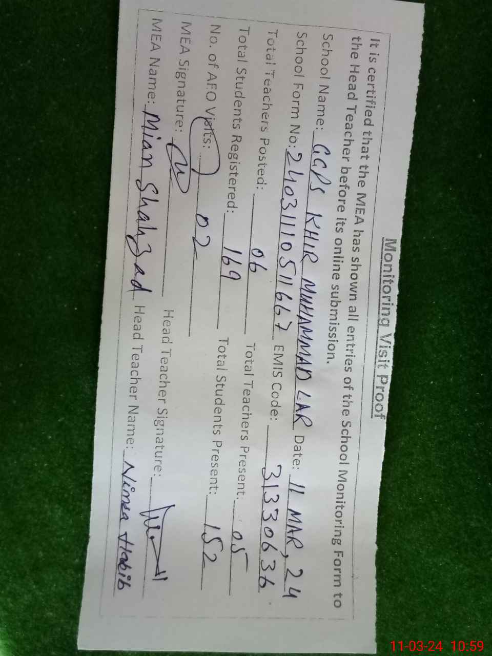 | EMIS Code: 31330636 | Name of School: GGPS KHAIR MUHAMMAD LAR | |||