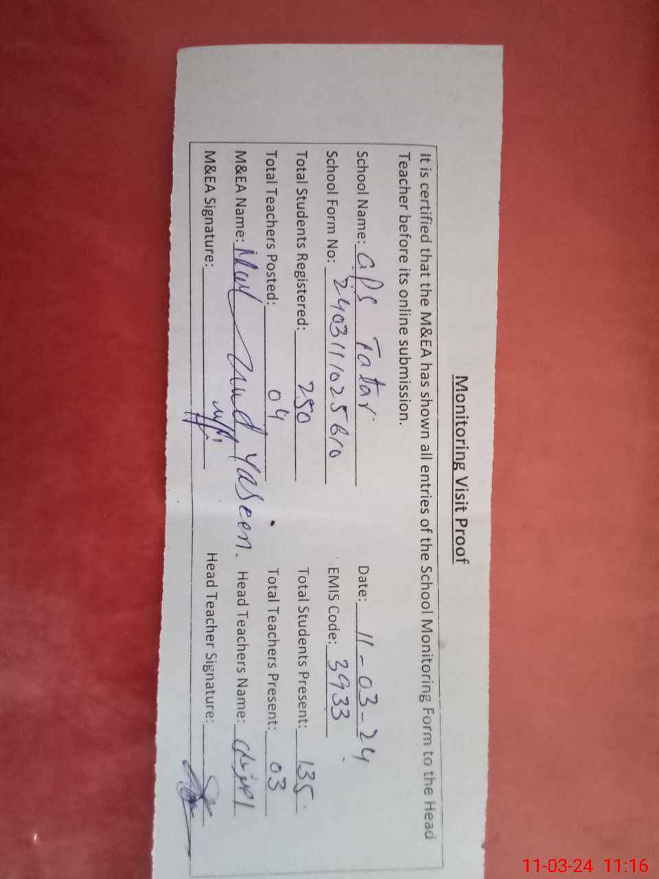 | EMIS Code: 39330331 | Name of School: GPS TATAR | |||
