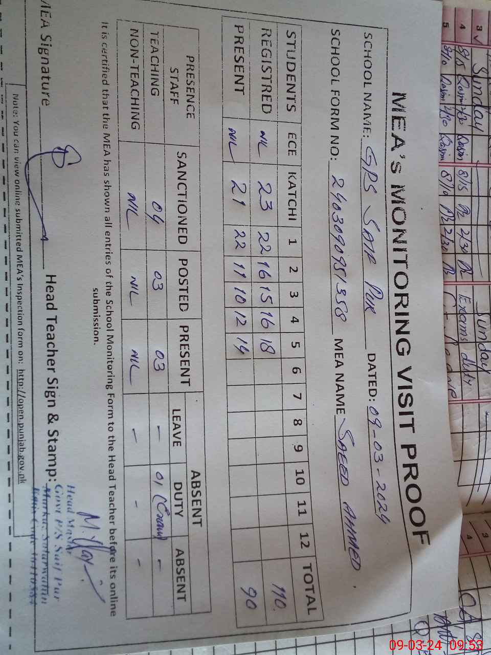 | EMIS Code: 36410584 | Name of School: GPS SAIF PUR, P/O MAAN KOT, NAWAN SHEHR | |||