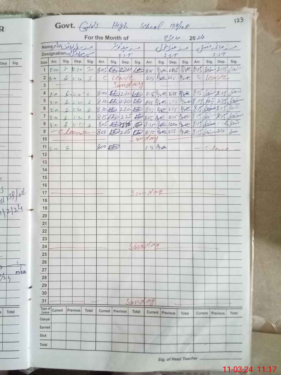 | 36**** | Uz**** No**** | 3 | 1 | 0 | 0 | 0 | 0 | 0 | 0 | 0 | 0 | 0 | Exam Duty |