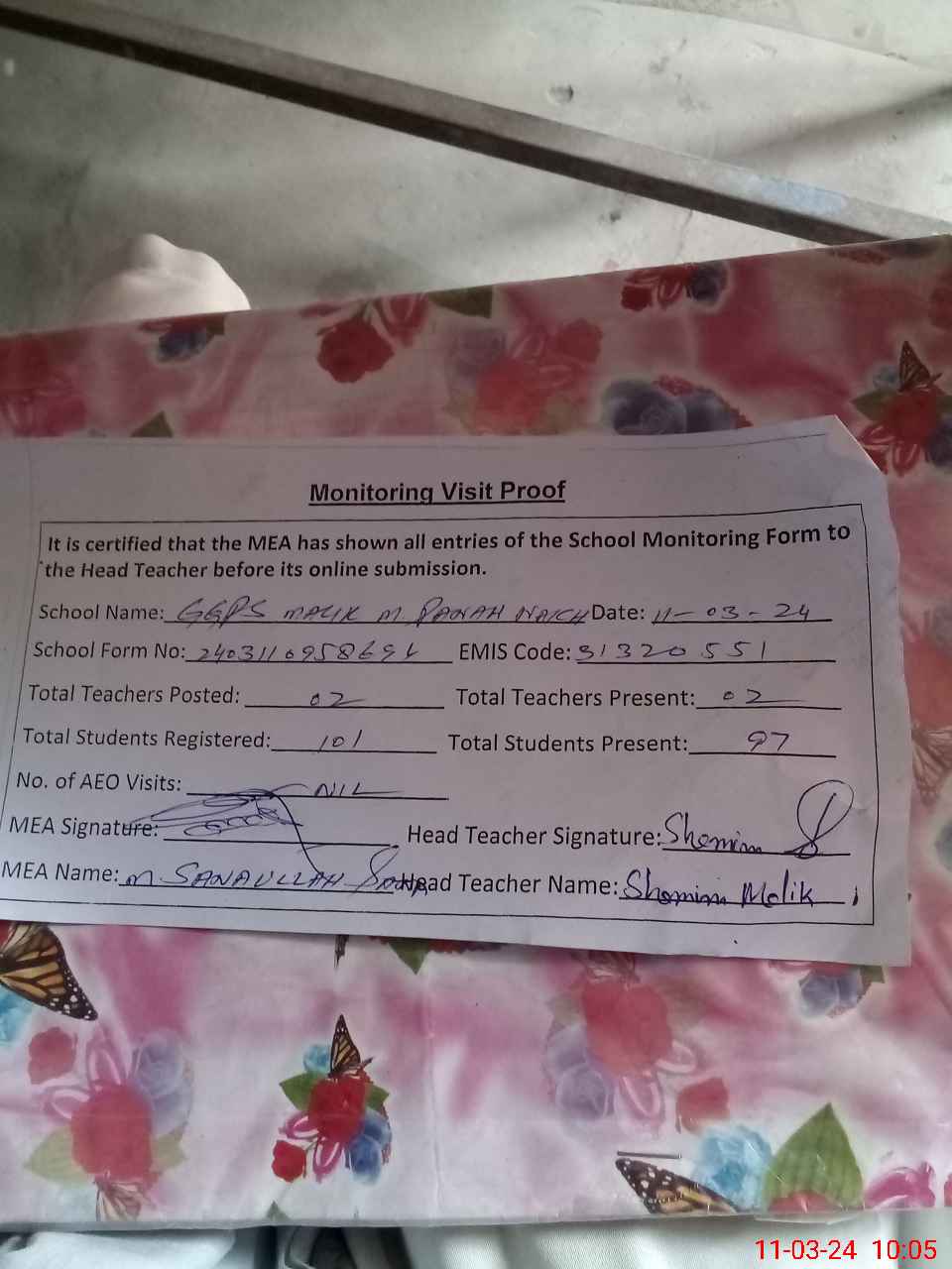 | EMIS Code: 31320551 | Name of School: GGPS MALIK MUHAMMAD PANNAH NAICH | |||