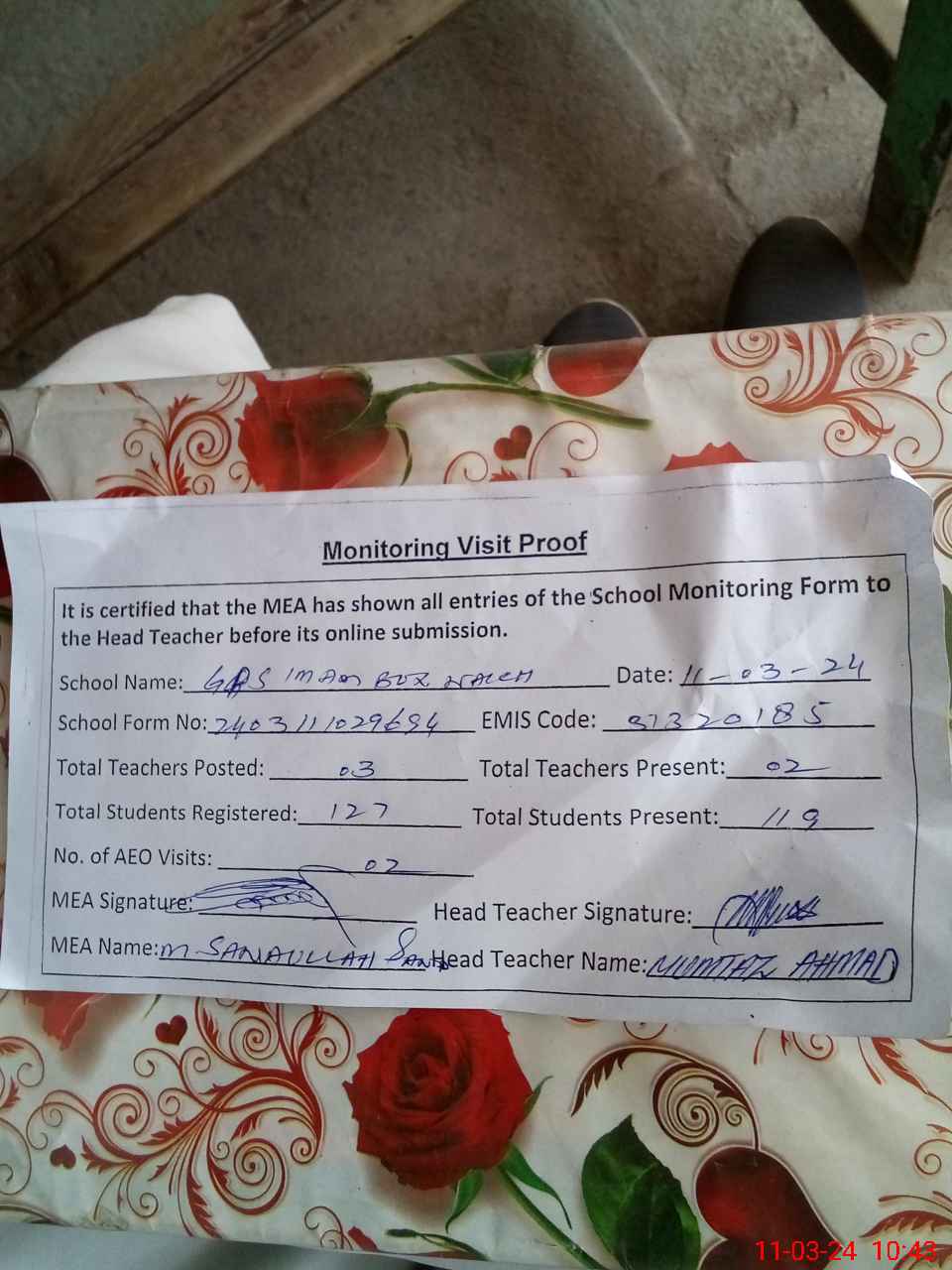| EMIS Code: 31320185 | Name of School: GPS IMAM BAKHASH ARAIN | |||