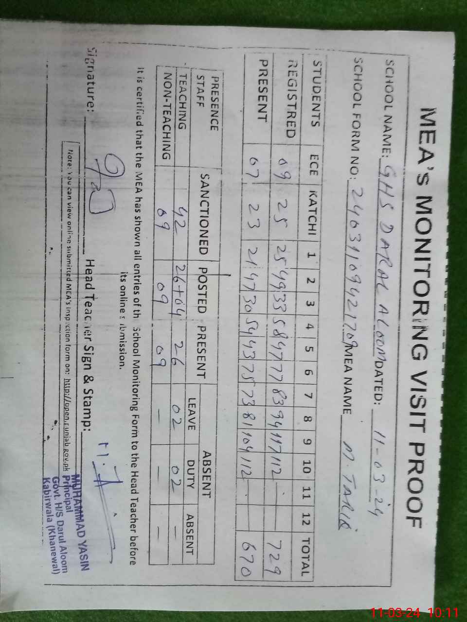 | EMIS Code: 36410039 | Name of School: GHS DAR-UL-ALOOM KABIRWALA | |||