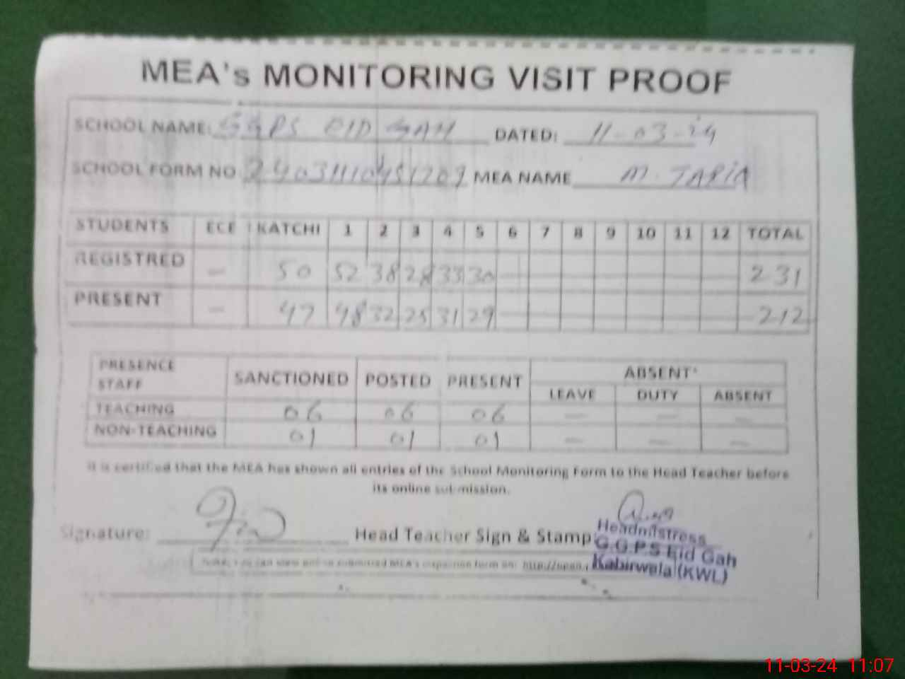 | EMIS Code: 36410336 | Name of School: GGPS EID GHAH, KABIRWALA | |||