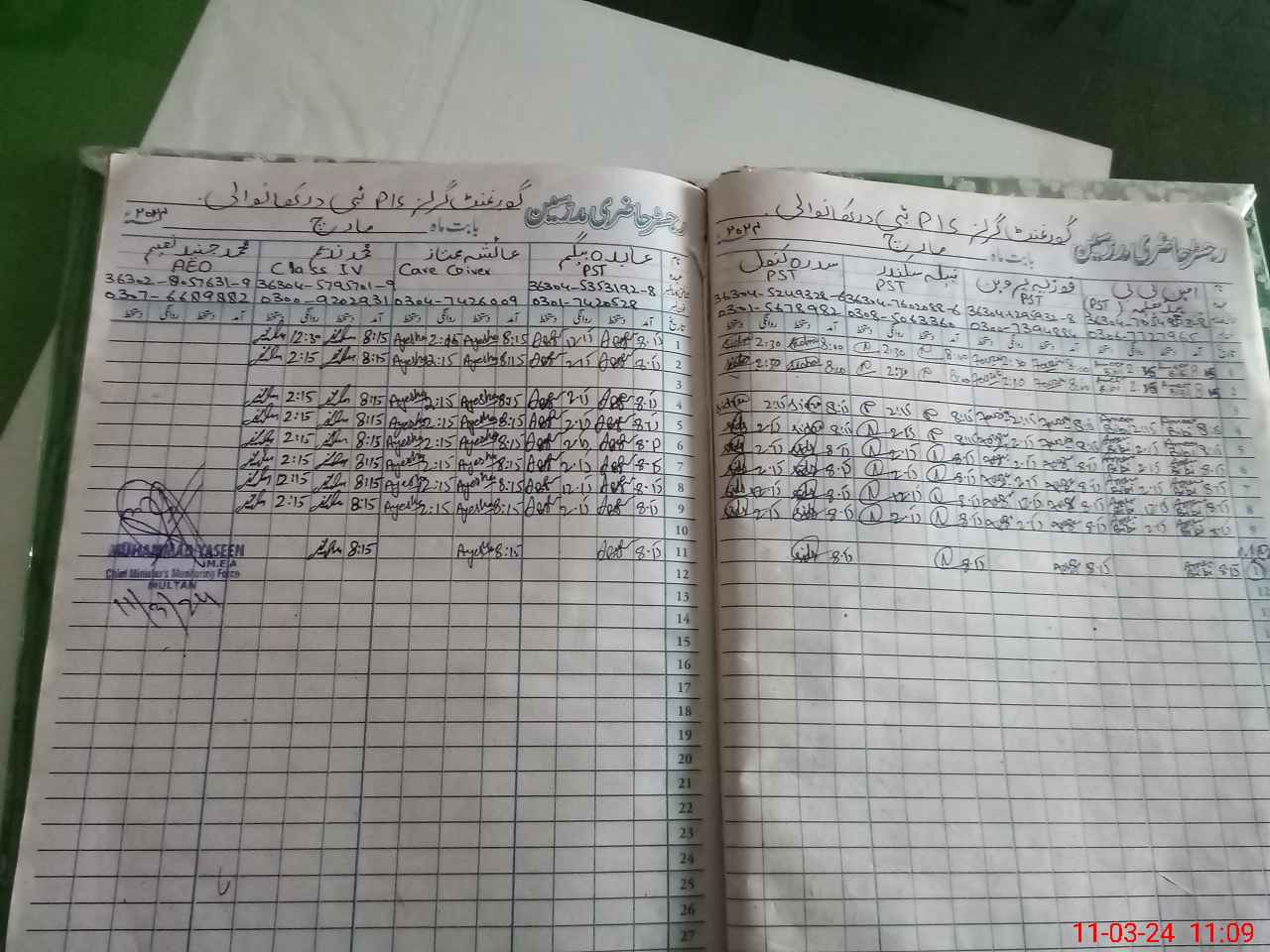 | Name: Na**** Si**** Designation: (School Headmaster's/Headmistress's) PST Phone/Cell Number: 03**** |
