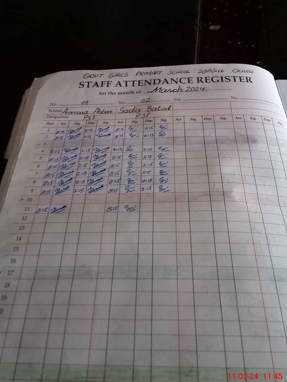 | District: OKARA | Tehsil: OKARA | Markaz: TABROOQ - FEMALE | Level: Primary | |