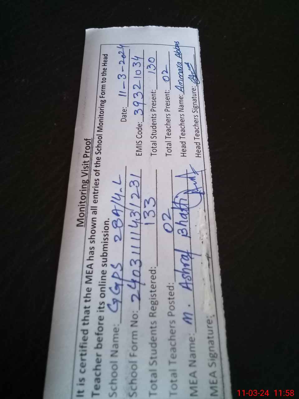 | EMIS Code: 39321034 | Name of School: GGPS CHAK NO. 28-A/4.L | |||