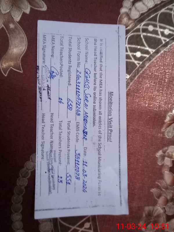 | EMIS Code: 38110078 | Name of School: GGHSS SARAI MUHAJAR | |||