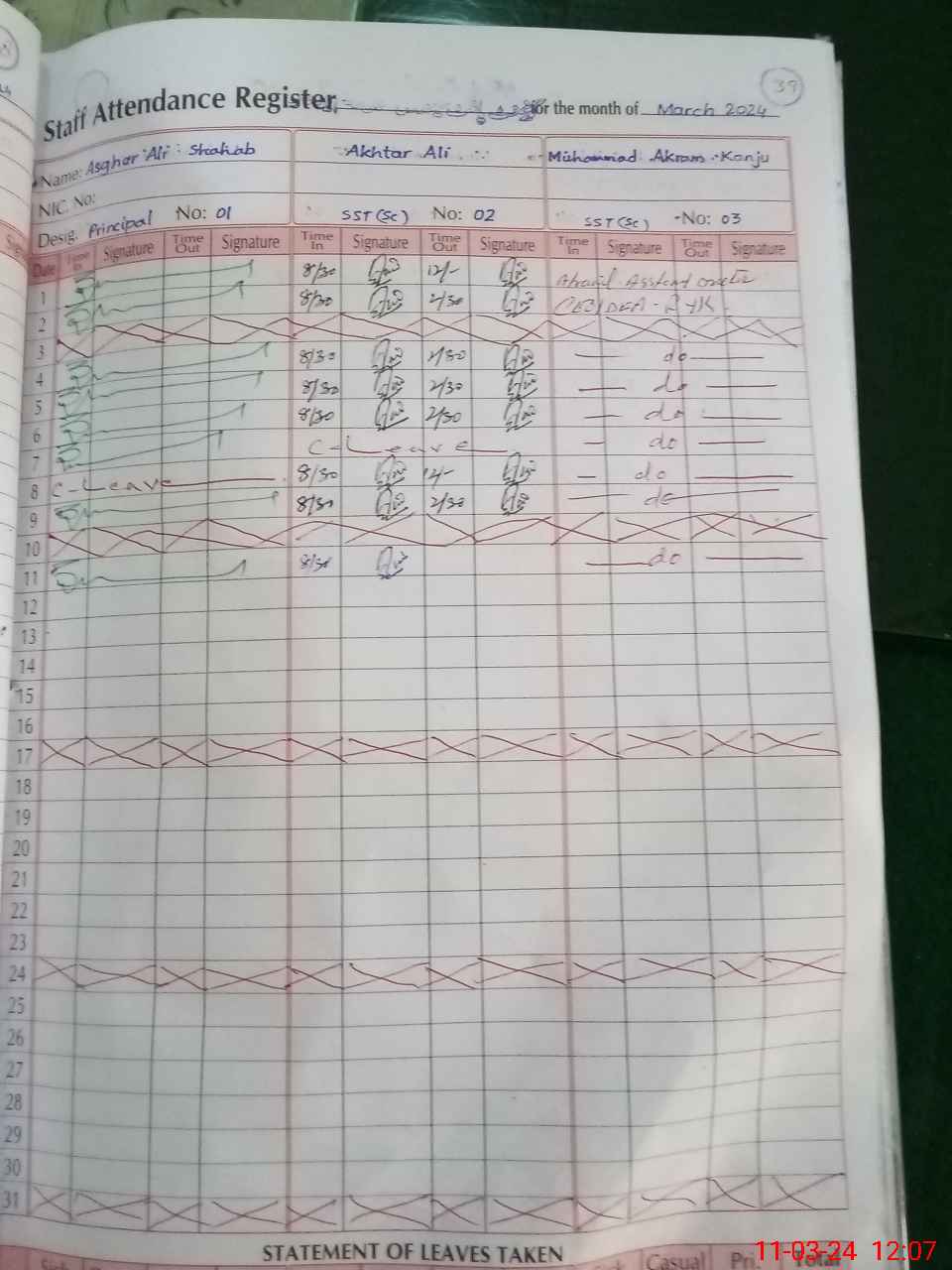 | 31**** | Ra**** Ab**** Gh**** | 1 | 1 | 0 | 0 | 0 | 0 | 0 | 0 | 0 | 0 | 0 | Exam Duty |