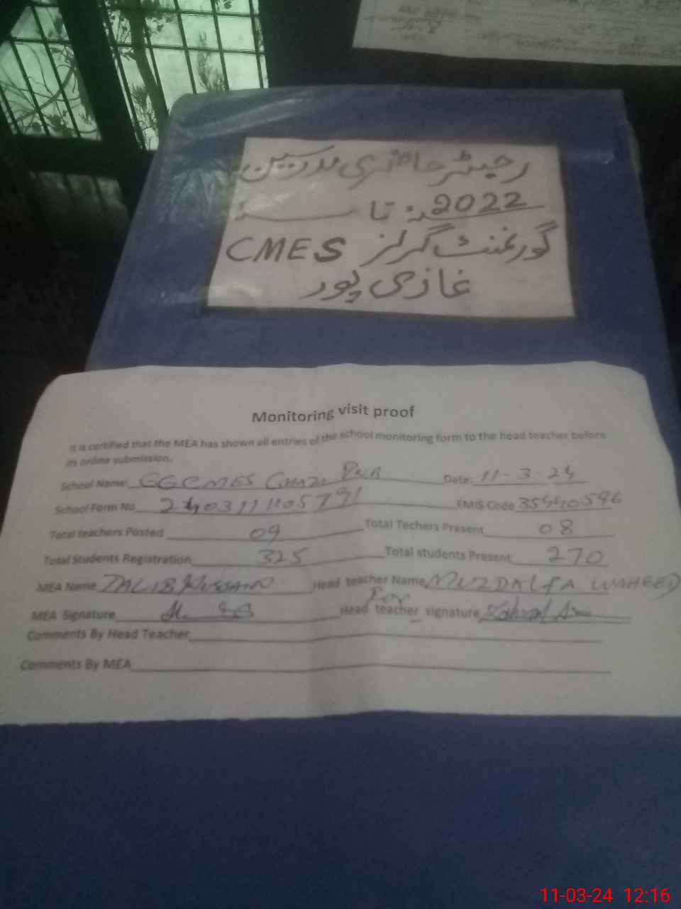 | EMIS Code: 35440596 | Name of School: GGCMES GHAZI PUR | |||