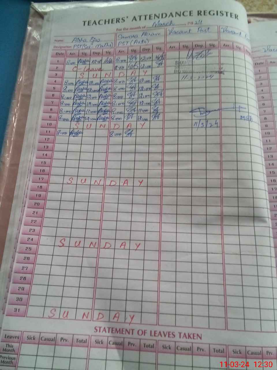 | Leave | Duty | Absent | Maternity | Medical | Ex- Pak |