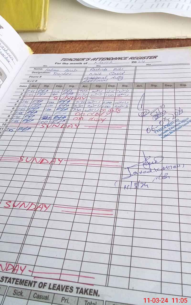 | Name: MU**** IQ**** Designation: (School Headmaster's/Headmistress's) PST Phone/Cell Number: 03**** |