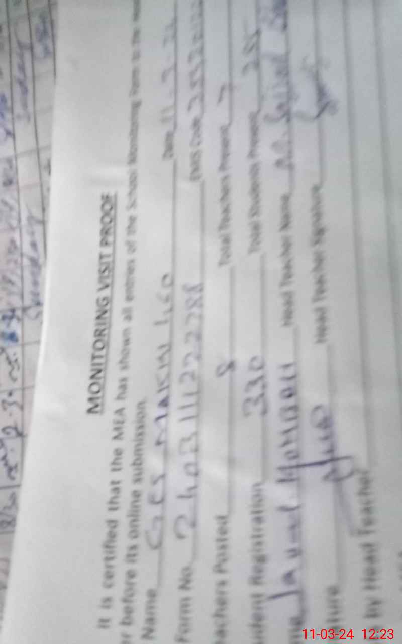 | Certified that this School was Inspected by the Undersigned MEA/DMO Today and the Information Stated Above is as Per Record. | |||||