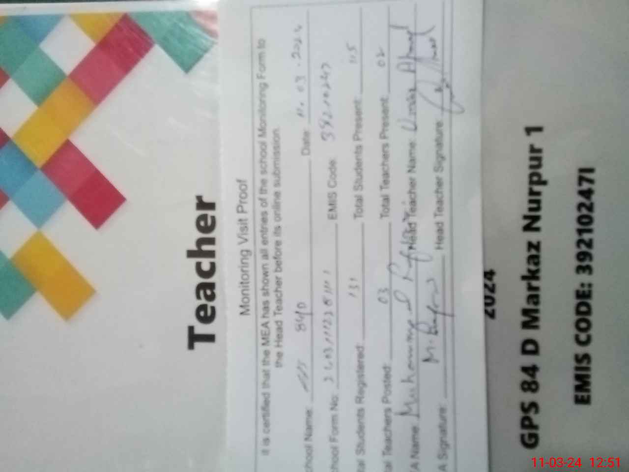 | EMIS Code: 39210247 | Name of School: GPS CHAK NO. 84 / D | |||