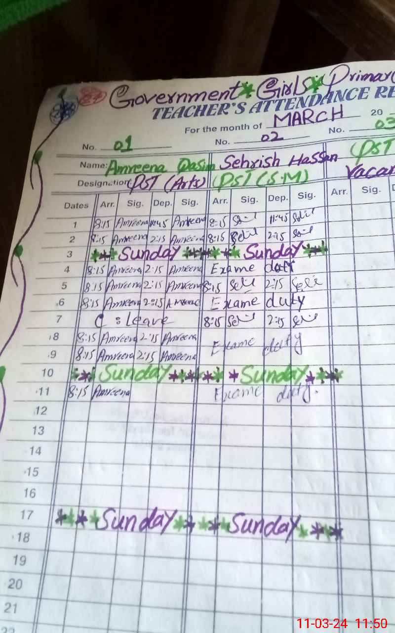| 38**** | Se**** Ha**** | PST | Regular | 0 | 0 | 0 | 0 | 0 | 0 | 0 | 0 | 0 | Exam Duty |