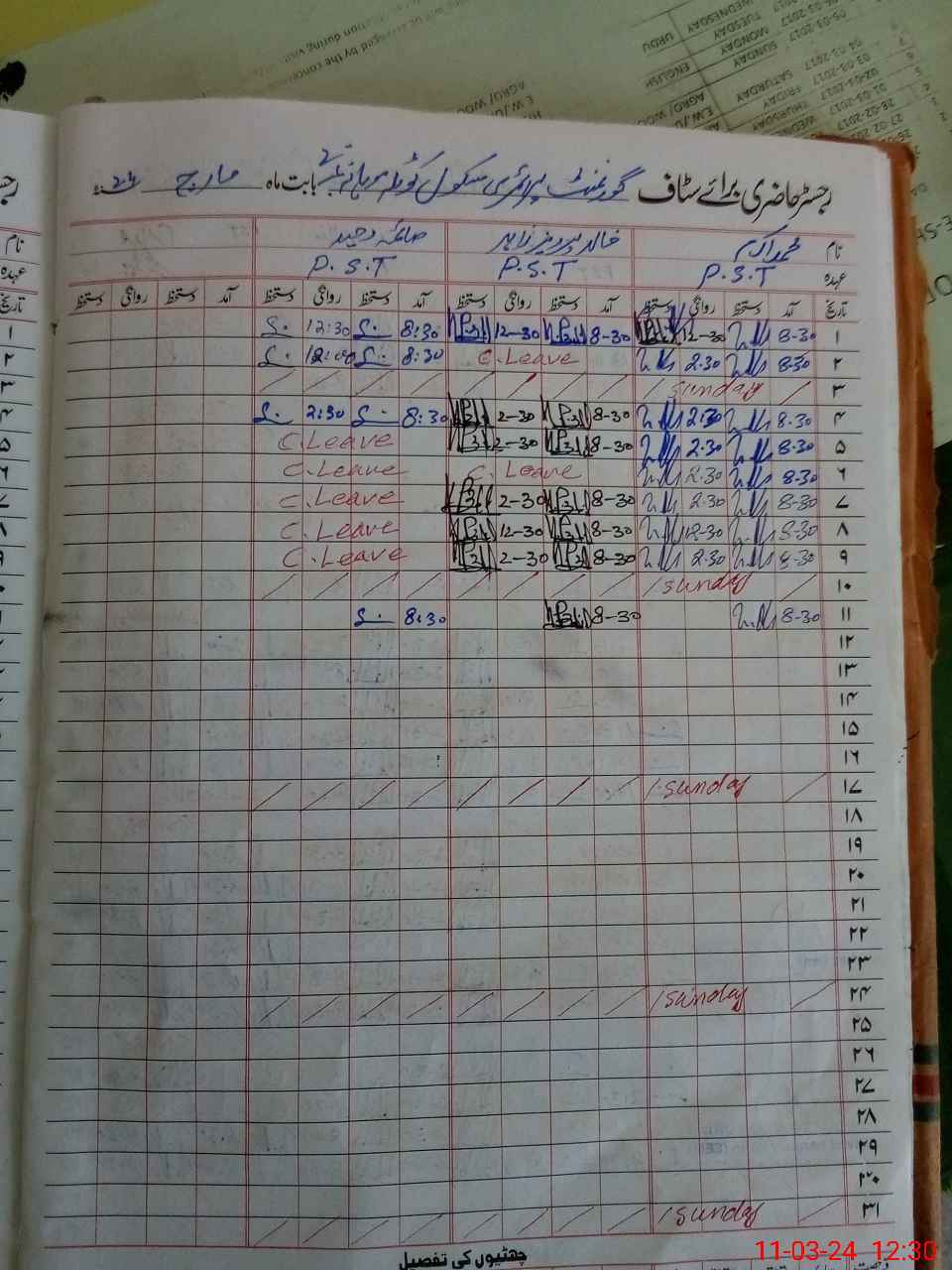 | CNIC | Full Name | Designation | R/C | Absence During Last Calender Month |