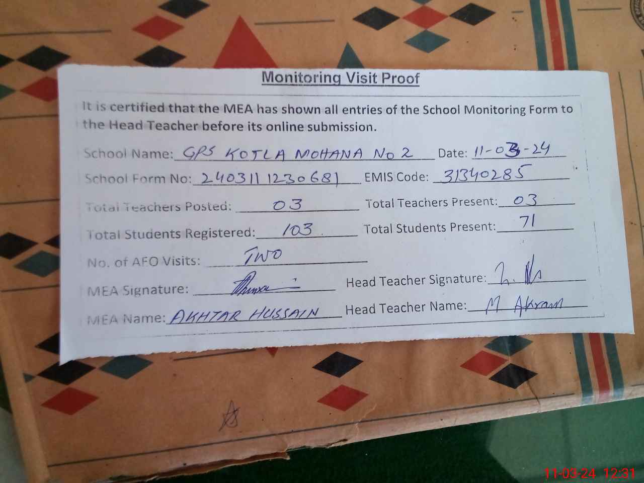 | EMIS Code: 31340285 | Name of School: GPS KOTLA MOHANA NO. 2 | |||