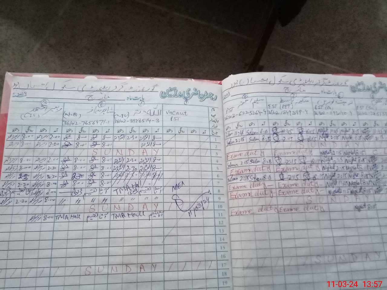 | 36**** | Is**** Na**** | 1 | 0 | 0 | 0 | 0 | 0 | 0 | 0 | 0 | 0 | Exam Duty | |