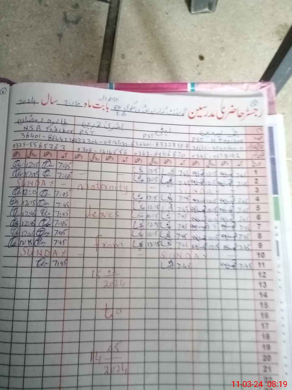 | Name: NA**** PE**** Designation: (School Headmaster's/Headmistress's) PST Phone/Cell Number: 03**** |