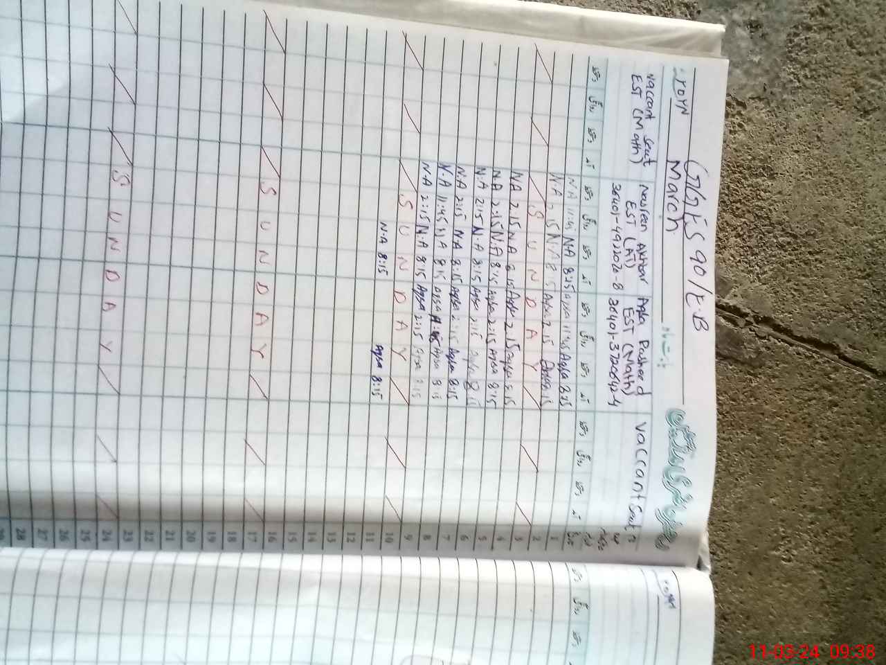 | Name: AQ**** RA**** Designation: (School Headmaster's/Headmistress's) EST (MATH) Phone/Cell Number: 03**** |