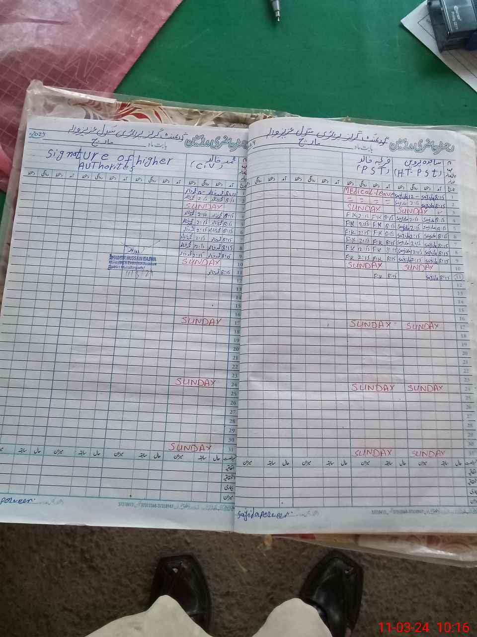 | Leave | Duty | Absent | Maternity | Medical | Ex- Pak |