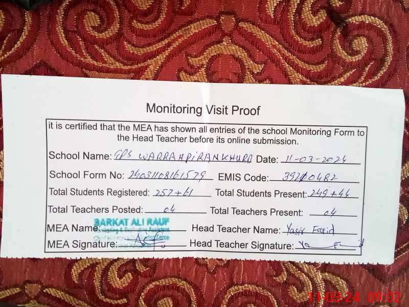 | EMIS Code: 39210482 | Name of School: GPS WARRAH PIRAN KHURD | |||