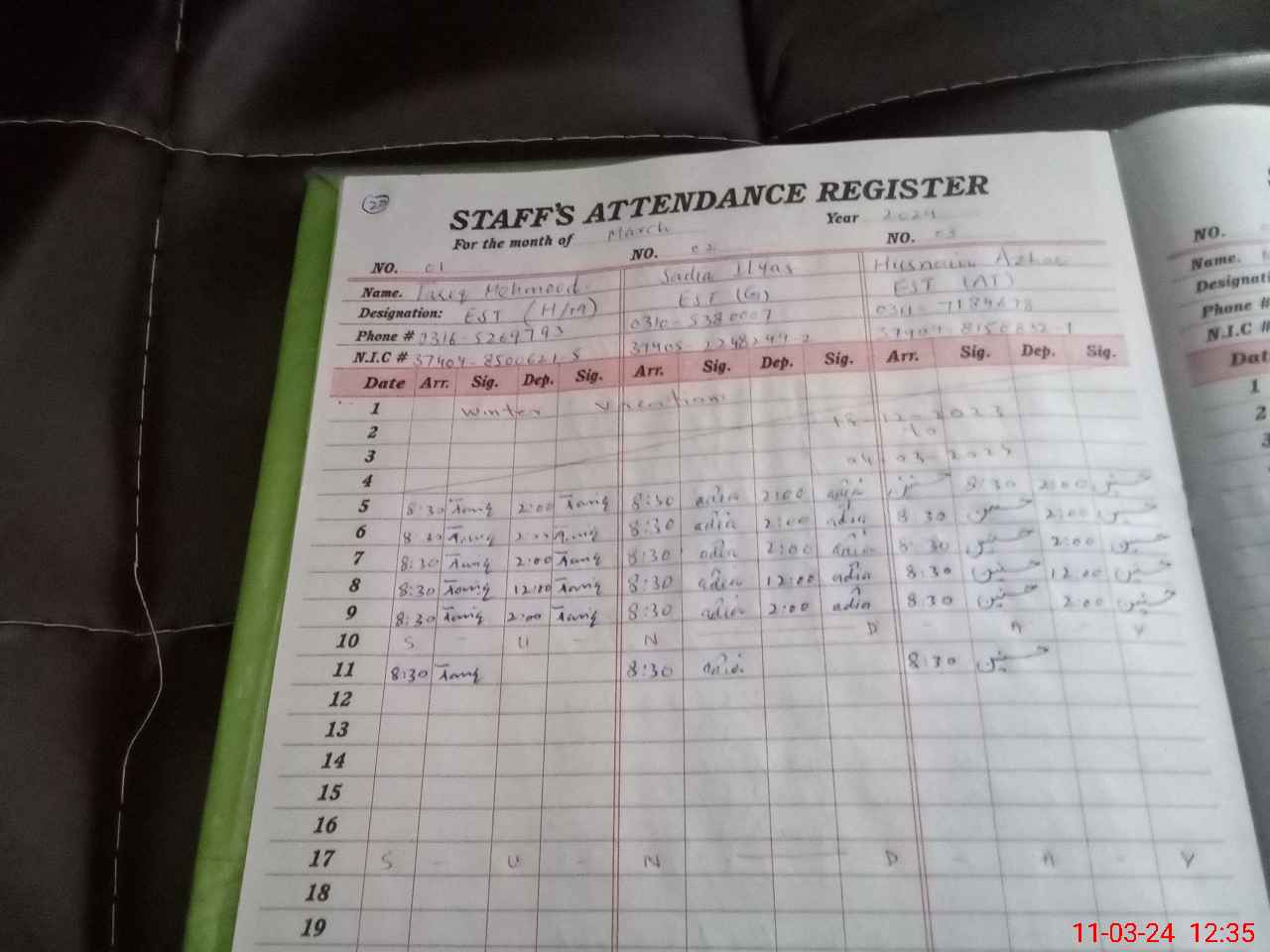 | CNIC | Full Name | Designation | R/C | Absence During Last Calender Month |