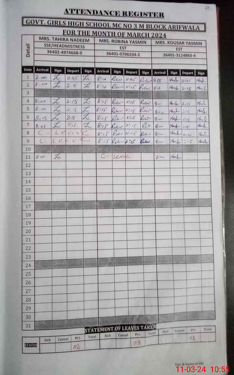 | 36**** | Ab**** Ha**** | Regular | 29 | 0 | 0 | 29 | 0 | 0 | 0 | 0 | 0 | Maternity | |