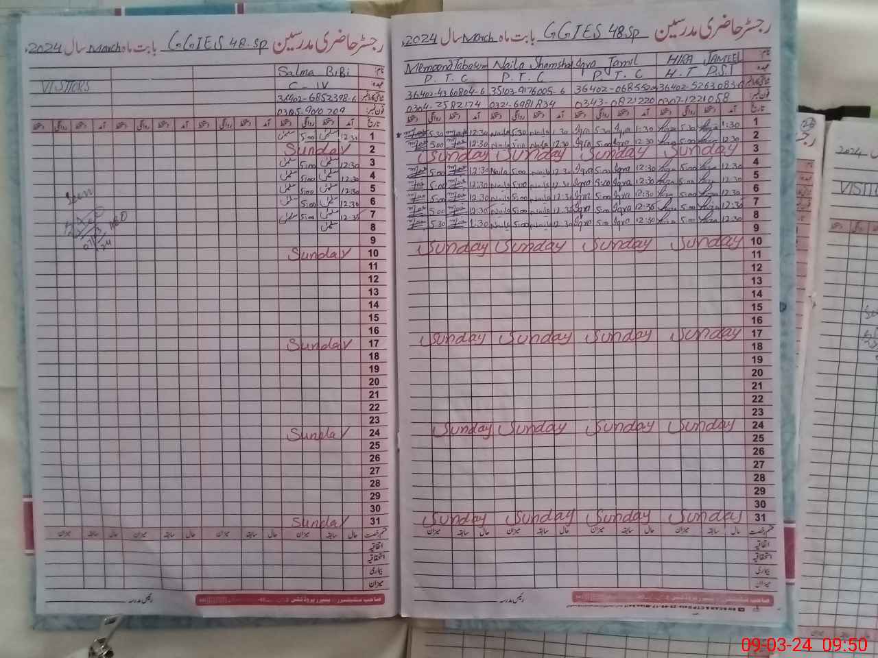 | CNIC | Full Name | Designation | R/C | Absence During Last Calender Month |