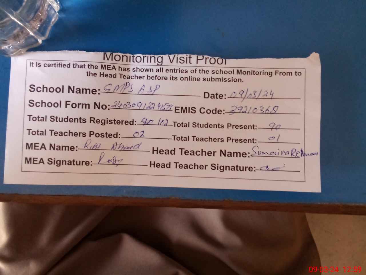 | EMIS Code: 39210368 | Name of School: GMPS 6/SP | |||