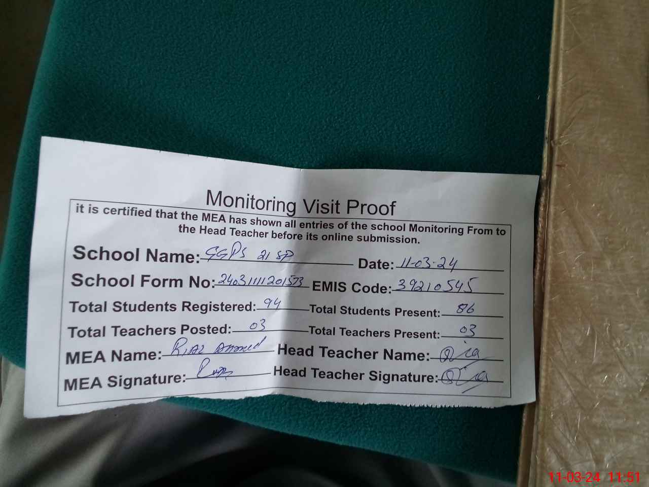 | EMIS Code: 39210545 | Name of School: GGPS 21/SP (Newly Established) | |||
