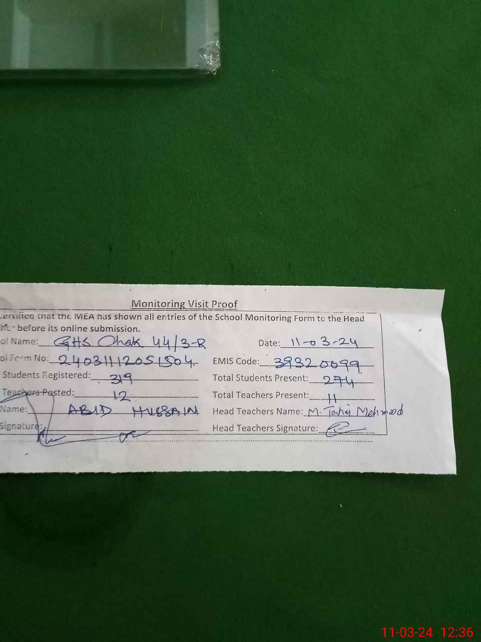| EMIS Code: 39320099 | Name of School: GHS CHAK 44/3-R | |||