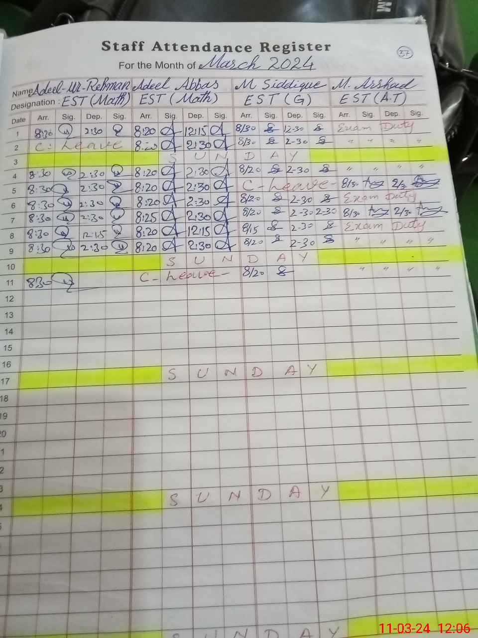 | 35**** | Mu**** Ar**** | 3 | 1 | 0 | 0 | 0 | 0 | 0 | 0 | 0 | 0 | 0 | Exam Duty |