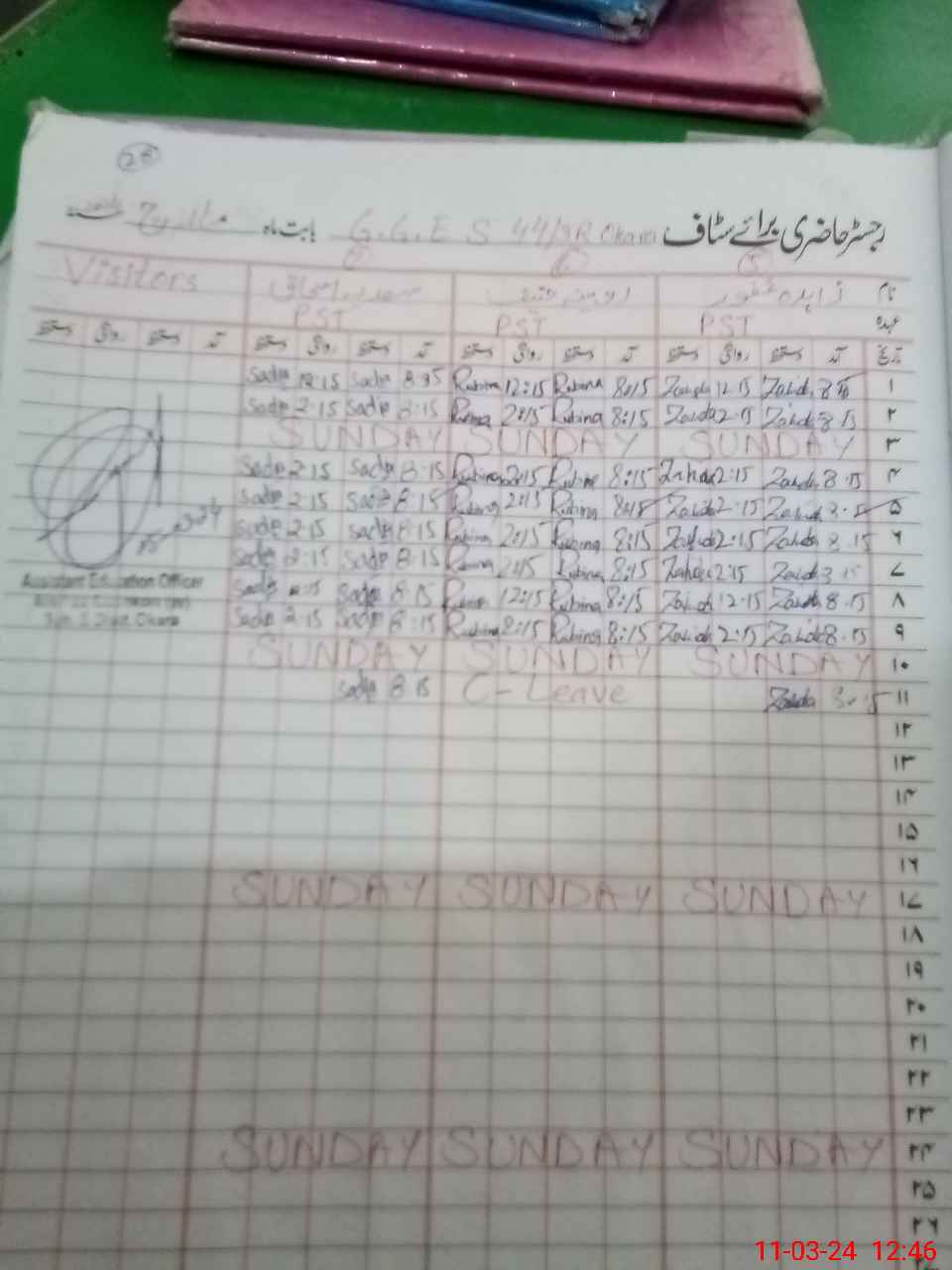 | Name: NA**** AR**** Designation: (School Headmaster's/Headmistress's) SST Phone/Cell Number: 03**** |