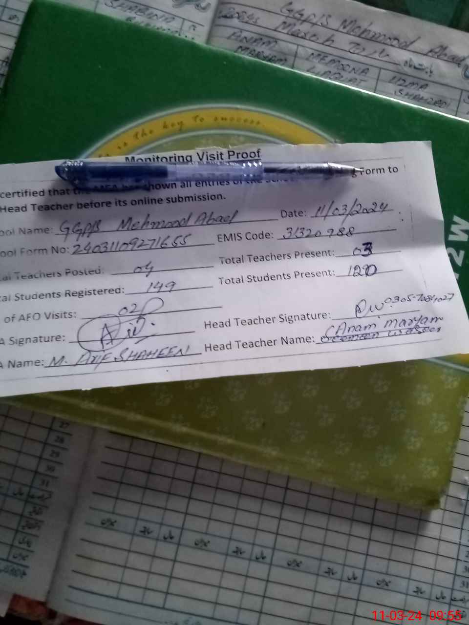 | EMIS Code: 31320988 | Name of School: GGPS MAHMOOD ABAD | |||