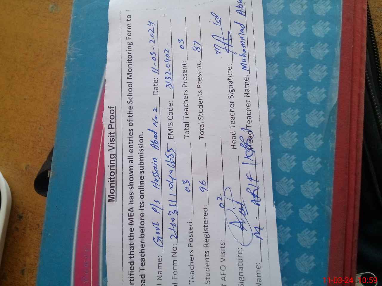| EMIS Code: 31320402 | Name of School: GPS HUSSAIN ABAD NO.2 | |||