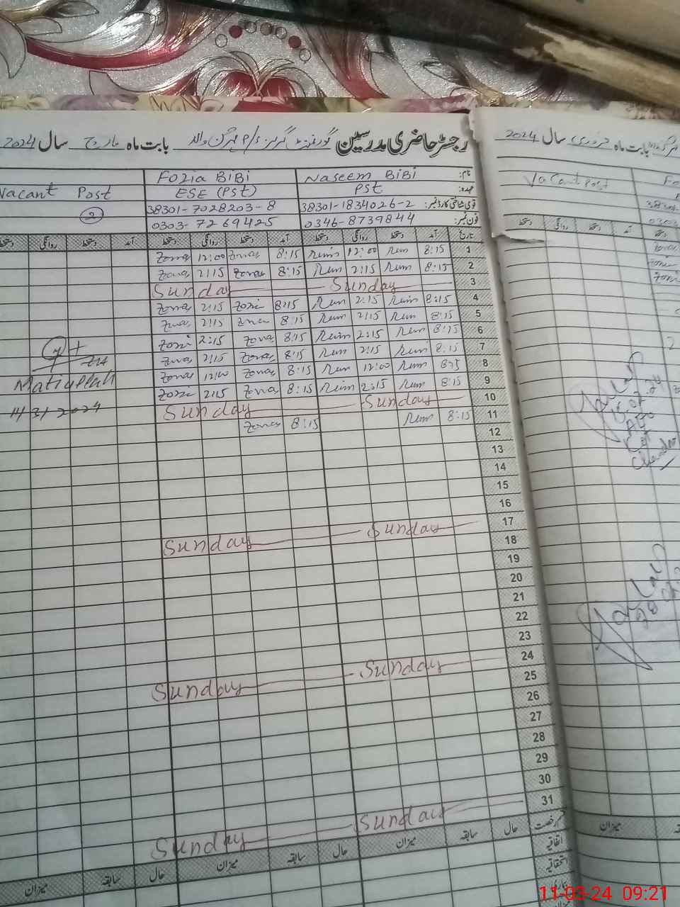 | Name: NA**** BI**** Designation: (School Headmaster's/Headmistress's) PST/PTC/JV Phone/Cell Number: 03**** |