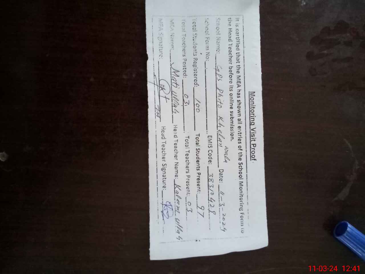 | EMIS Code: 38310429 | Name of School: GPS PHITO KHELAN WALA | |||