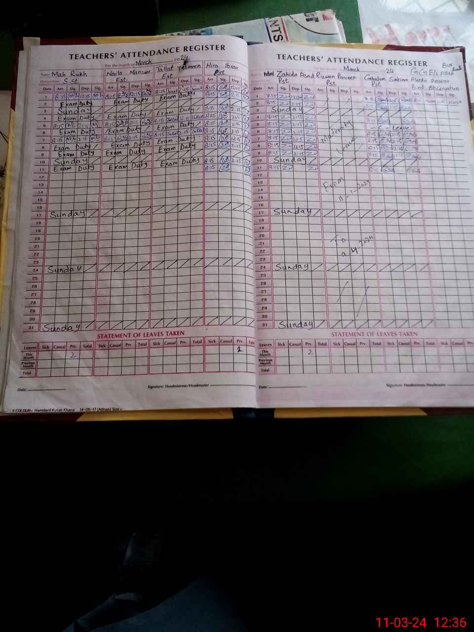 | 31**** | Ta**** Ya**** | Regular | 0 | 0 | 0 | 0 | 0 | 0 | 0 | 0 | 0 | Exam Duty | |