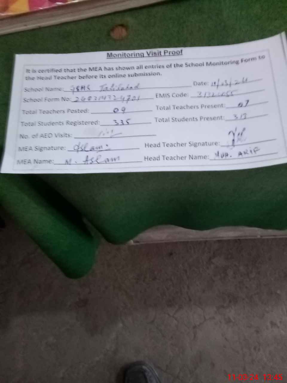 | EMIS Code: 31320055 | Name of School: GHS JALIL ABAD | |||