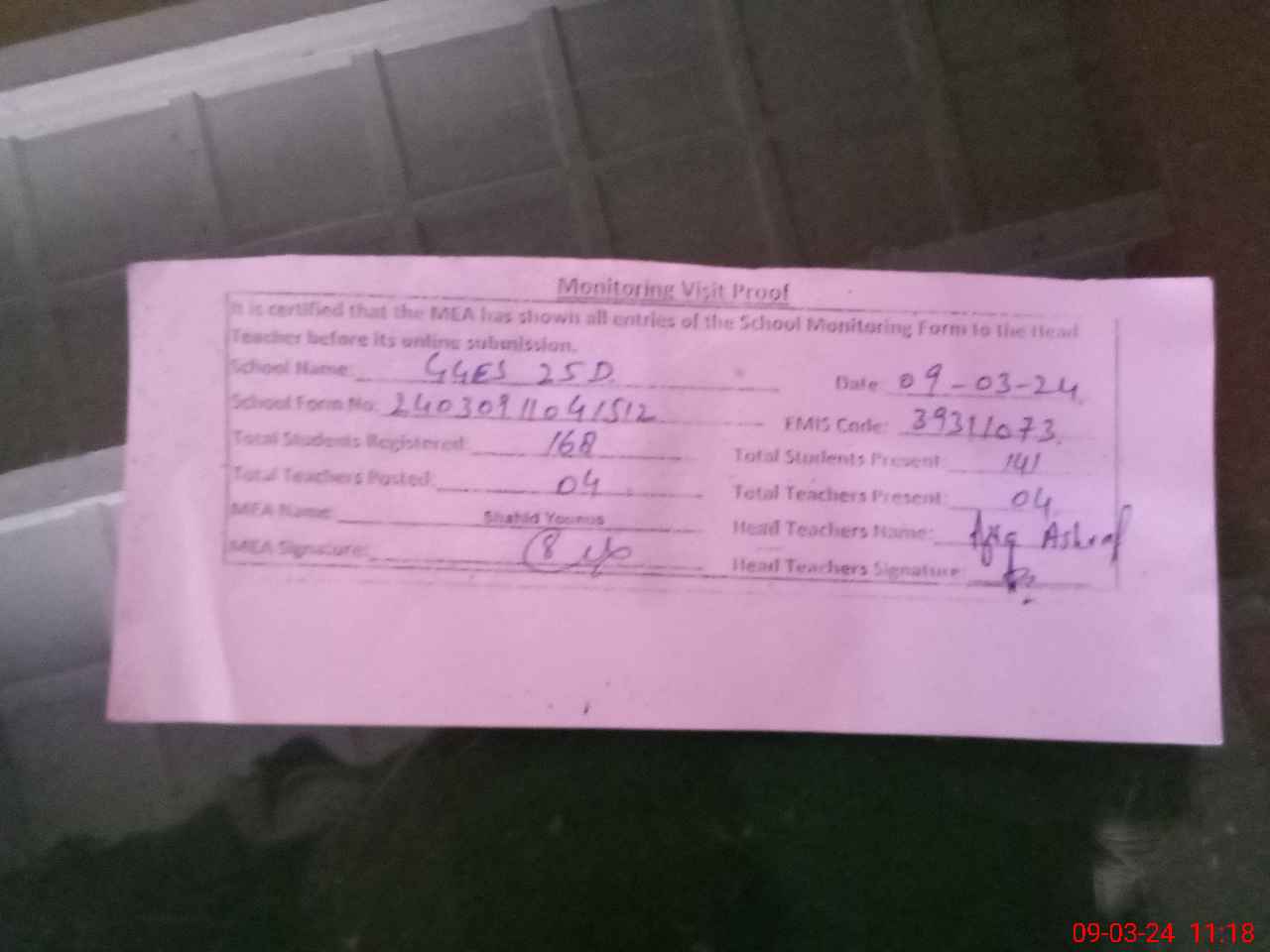| EMIS Code: 39311073 | Name of School: GGES CHAK NO. 25/D | |||