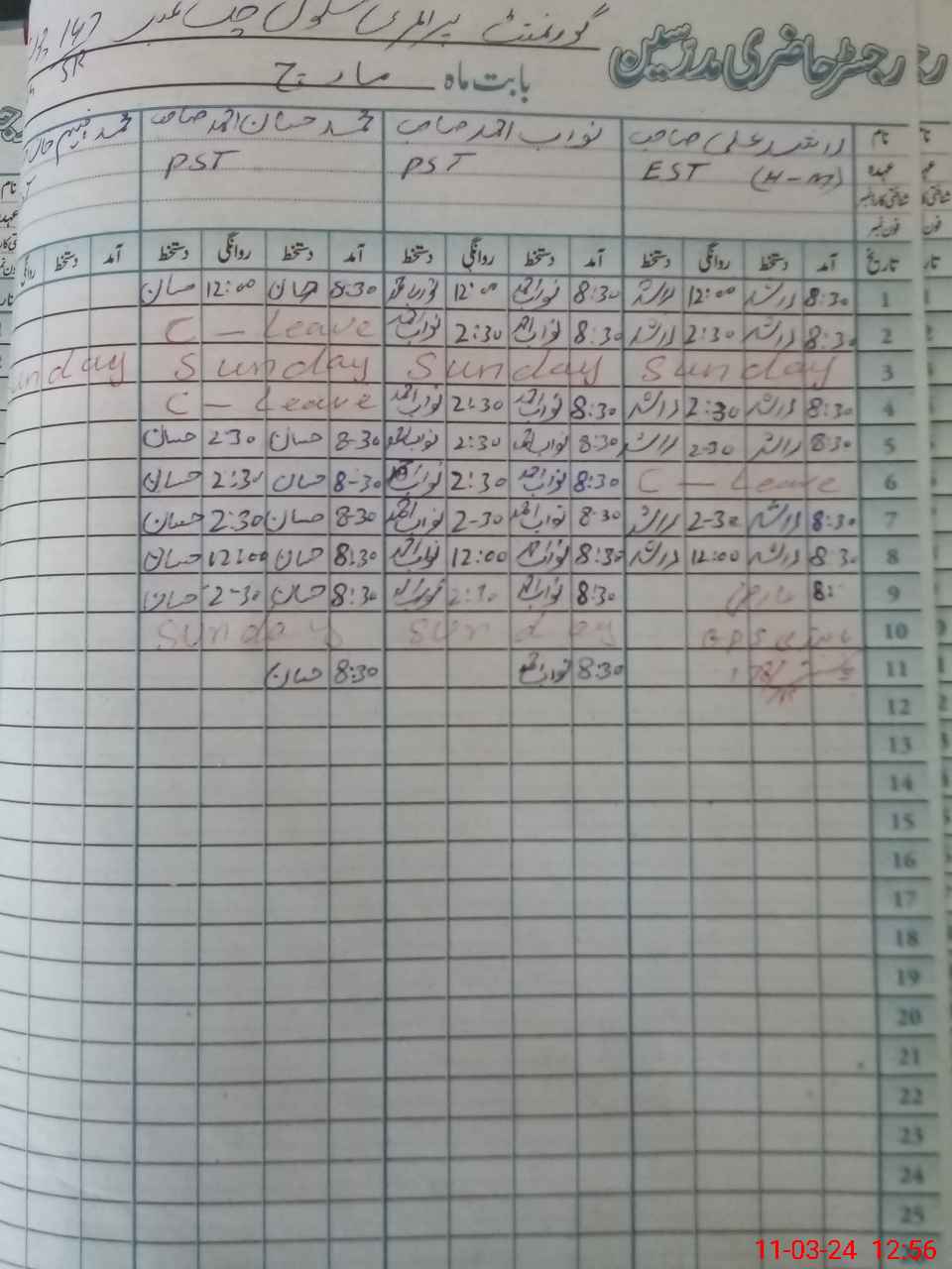 | 31**** | Mu**** Fa**** Kh**** | 2 | 0 | 0 | 29 | 0 | 0 | 0 | 0 | 0 | 0 | Absent (Un-Authorized) | |