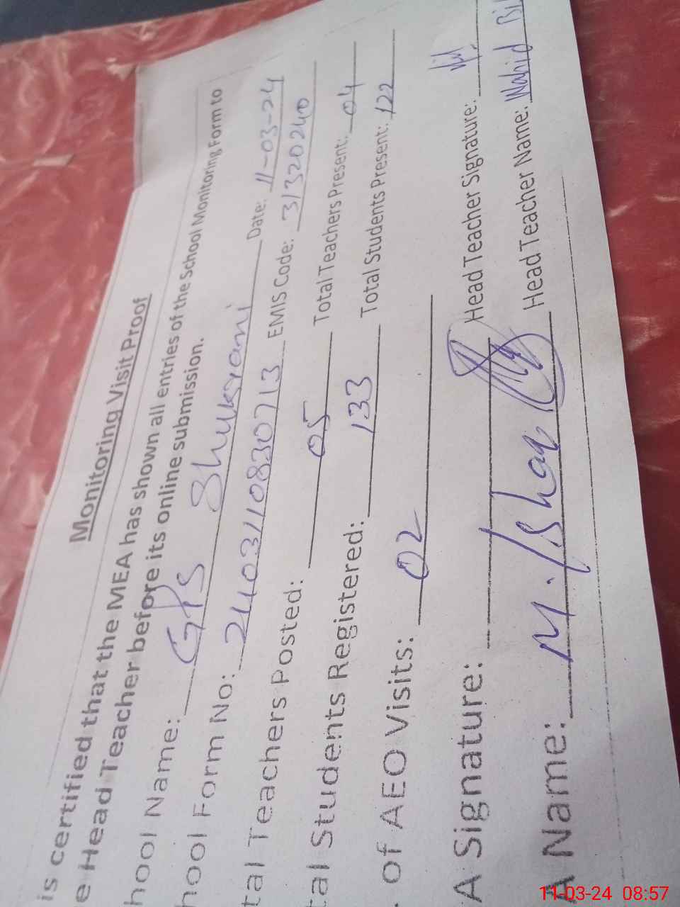 | EMIS Code: 31320240 | Name of School: GPS SHUKRANI | |||