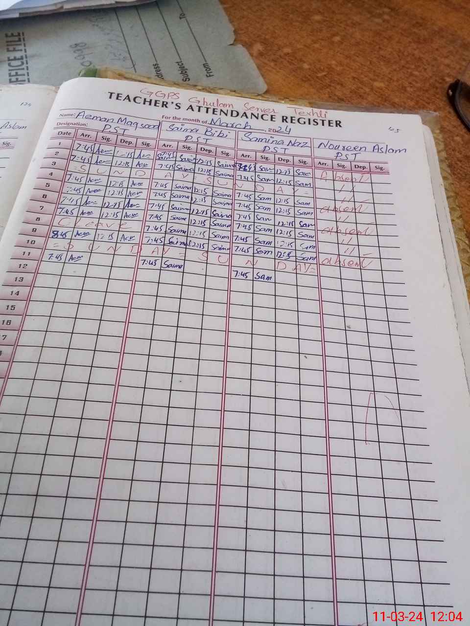 | 31**** | No**** As**** | PST | Regular | 0 | 0 | 0 | 0 | 0 | 0 | 0 | 0 | 0 | Absent (Un-Authorized) |