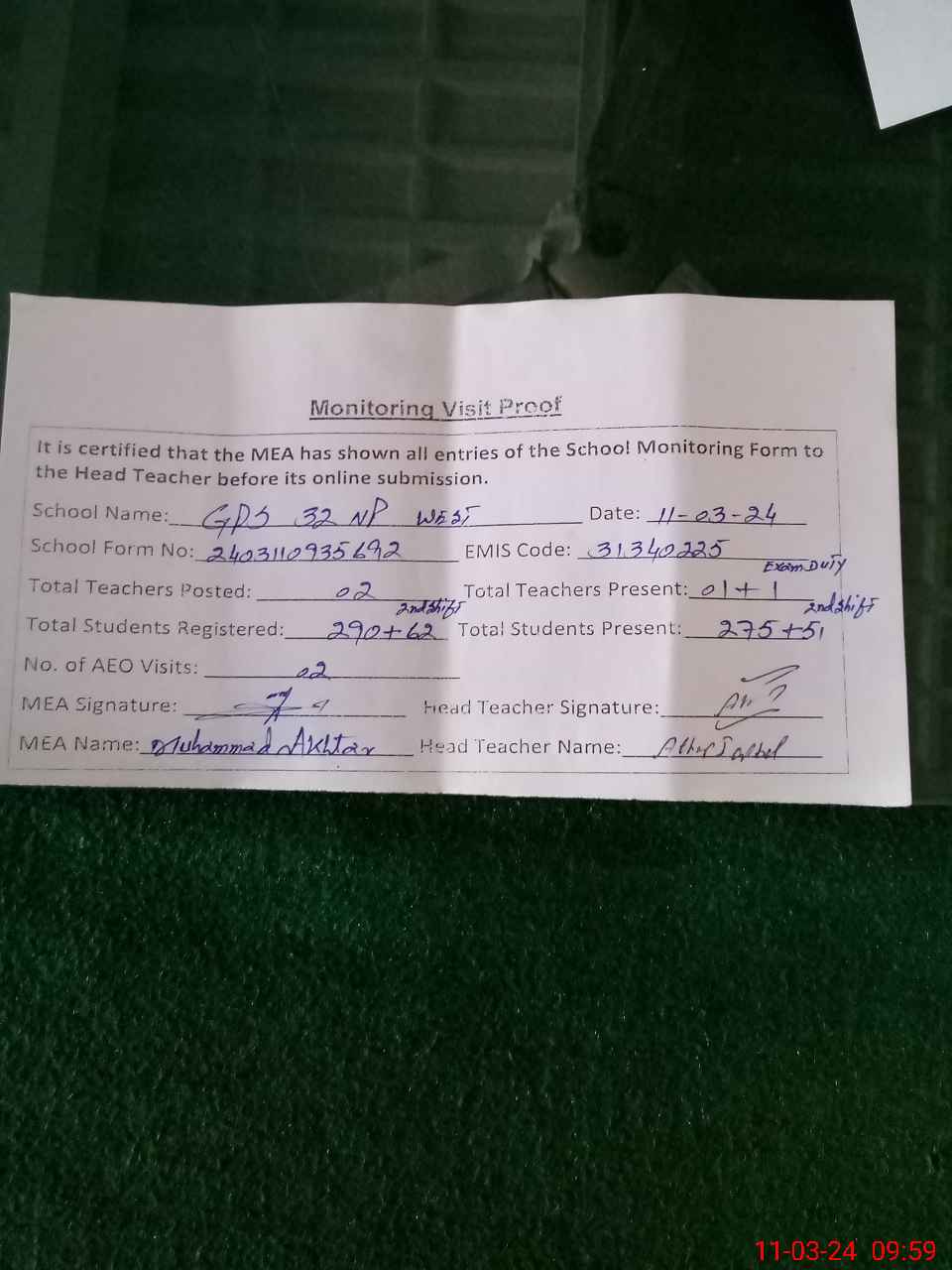 | EMIS Code: 31340225 | Name of School: GPS CHAK NO. 32 WEST | |||
