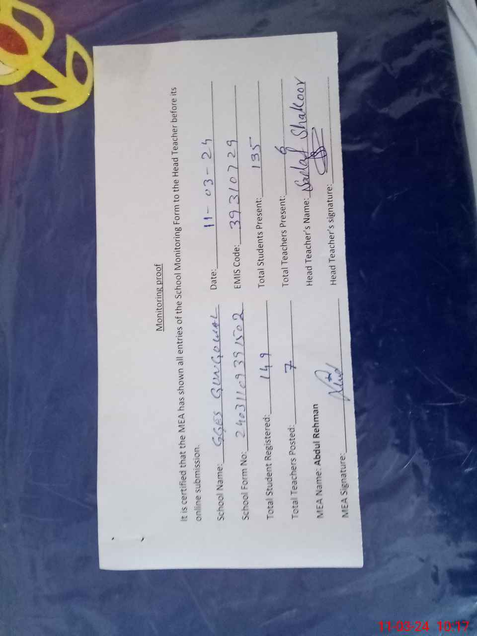 | Certified that this School was Inspected by the Undersigned MEA/DMO Today and the Information Stated Above is as Per Record. | |||||